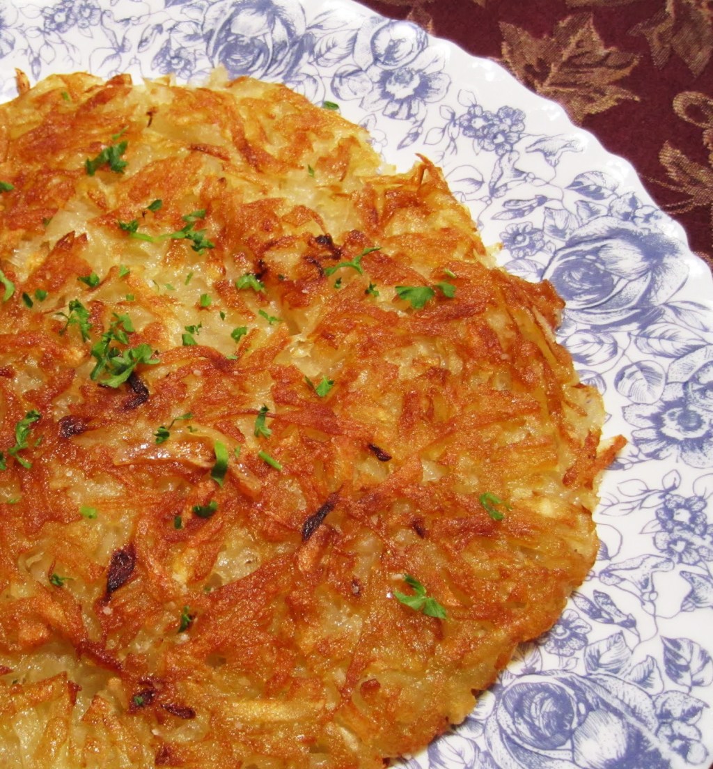 Simply put, this is a big (the size of a frying pan) Jewish latke(s), also Belarusian dranik(i), Ukranian derun(i), German Kartoffelpuffer, and Swiss Roesti.
