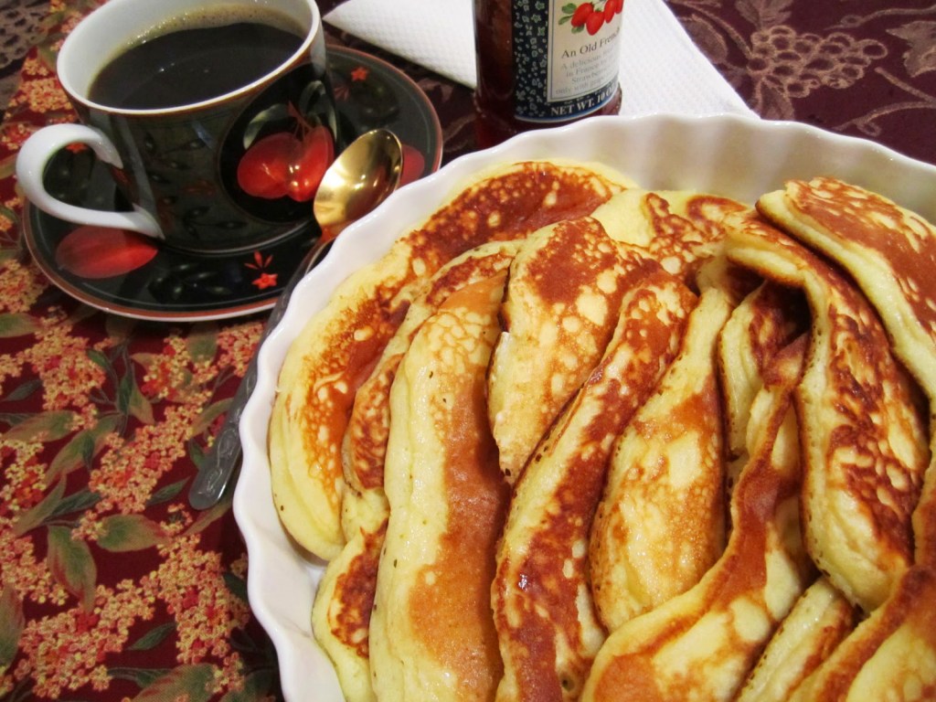 Serve hot with cold sour cream and jam for a sweet tooth or with caviar and salted salmon. Followed by a cup of coffee, these pancakes make a hearty treat for your lazy Sunday morning. Enjoy.:)
